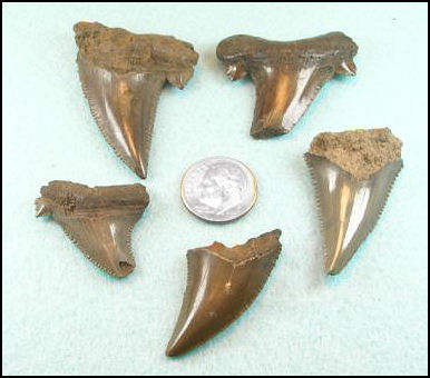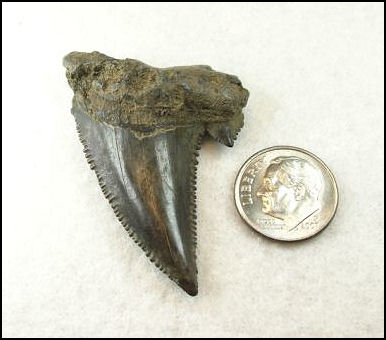 RICS Age - Eocene Commonality - Uncommon The Carcharocles group is best known for the species C. megalodon, better known as megs. While there is some debate as to the actual number of species in this genus, we can limit the Carcharocles teeth found in Monmouth County, NJ to one of two species, C. auriculatus (Rics) or C. chubutensis (Chubs).
