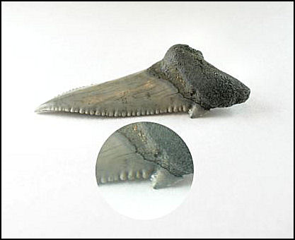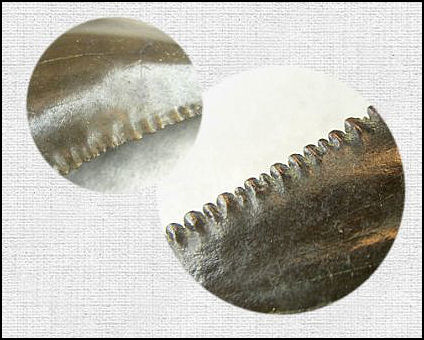 Anterior C. auriculatus, the serrations on this tooth are coarse