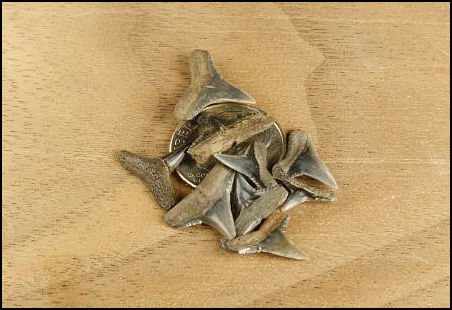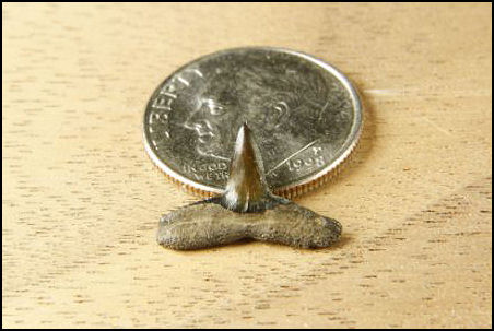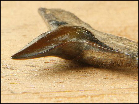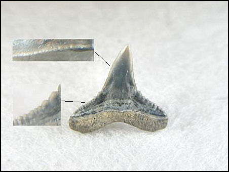 The Gray Sharks Age - Eocene - Present Commonality - Uncommon Carcharhinus is a large group know commonly known as the gray sharks. Trying to determine the individual species within this genus is well beyond the scope of this website. Uncommon in the New Jersey area the teeth of Carcharhinus are small, averaging between ¼ to ½ inch in length. They are very similar in appearance and size to the commonly found lemon shark (Negaprion eurybathrodon) with the main difference being in the serrations, the teeth of Carcharhinus are usually fully serrate. Differences between uppers and lowers and male and female is common in this genus.